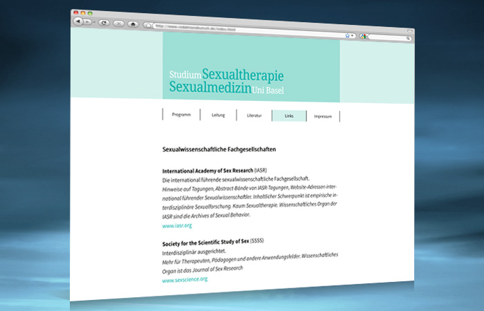 University Basel (CH), studies of sexual therapy and sexual medicine – web design